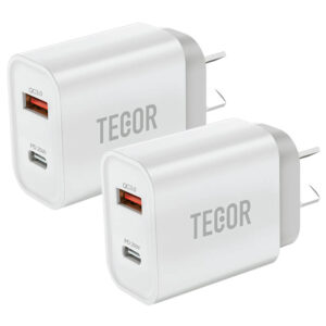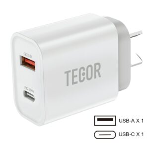 20W Dual Port USB Fast Charger USB-C & USB-A Power Adapter PD QC 3.0 Wall Charger Tecor