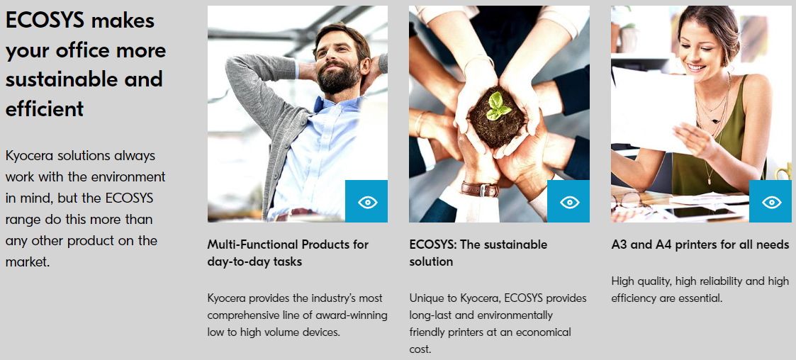 ECOSYS stands for ECOlogy, ECOnomy and SYStem-printing. With their long-life components, ECOSYS devices are designed to maximise durability and minimise the total cost of ownership with regard to maintenance, administration and consumables. The cartridgefree system means that toner is the only consumable. The modular design concept allows you to add workflow enhancing functions as required. Integrated system software provides long-term cross network compatibility. KYOCERA’s long-life components cost you and the environment less.