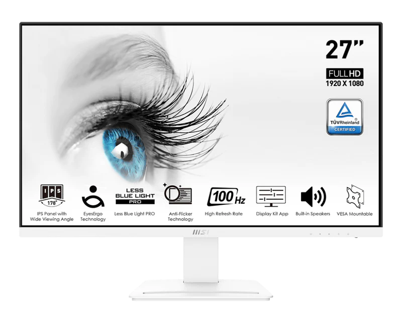 MSI PRO MP273AW 27″ Business & Productivity Monitor. White, 27″/IPS/FHD/100Hz/1ms/DP,HDMI,VGA/Speakers/3Y