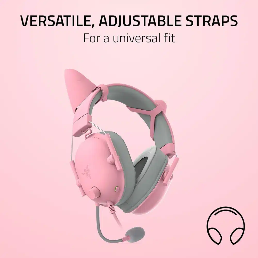 Designed to perch snugly atop almost any headset, the Kitty’s ears feature adjustable, retractable straps that can be fastened around any part of your headset band for a customizable and secure fit