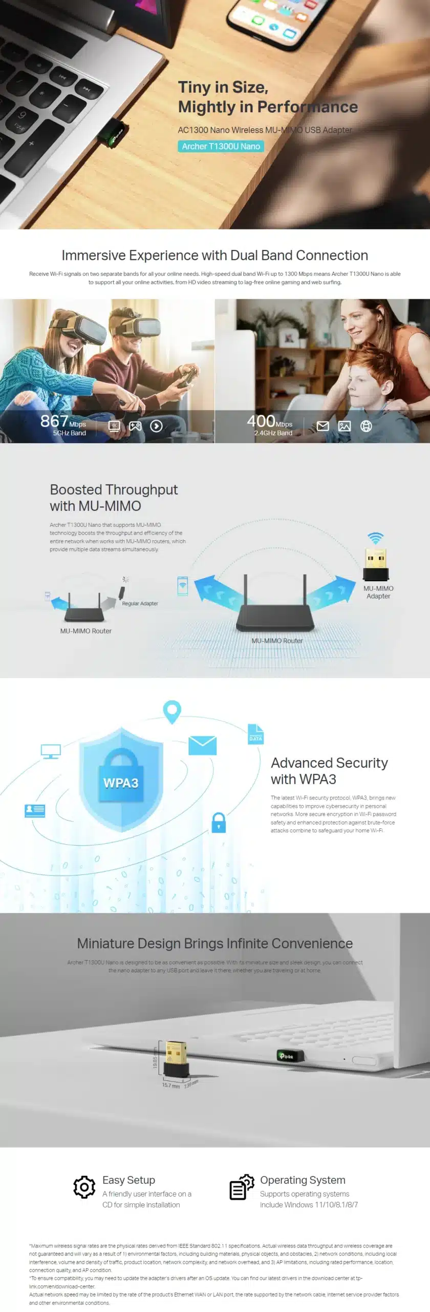 TP-Link Archer T1300U Nano AC1300 Nano Dual Band Wi-Fi USB Adapter